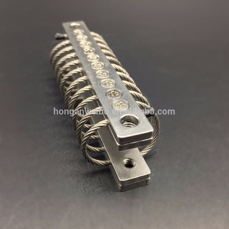 와이어 로프 격리기는 스테인리스 스틸 또는 알루미늄 수리 바를 통해 스레드 된 스테인리스 스틸 로드 케이블로 구성되며 효과적인 충격 및 진동 격리를 위해 장착됩니다.